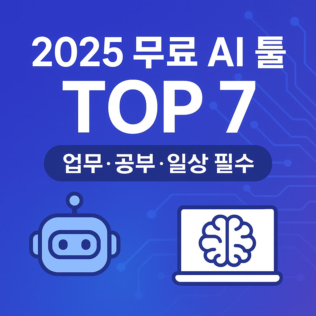 오늘은 2025년 기준으로 누구나 무료로 사용할 수 있는 AI 툴 TOP 7을 소개해드리겠습니다.